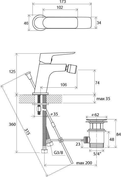 - węże przyłączeniowe: elastyczne 400 mm, średnica G3/8