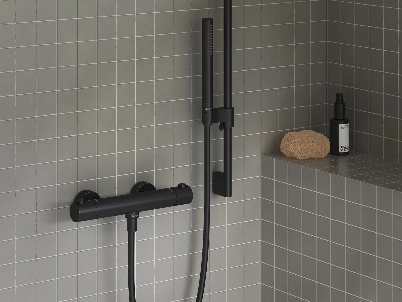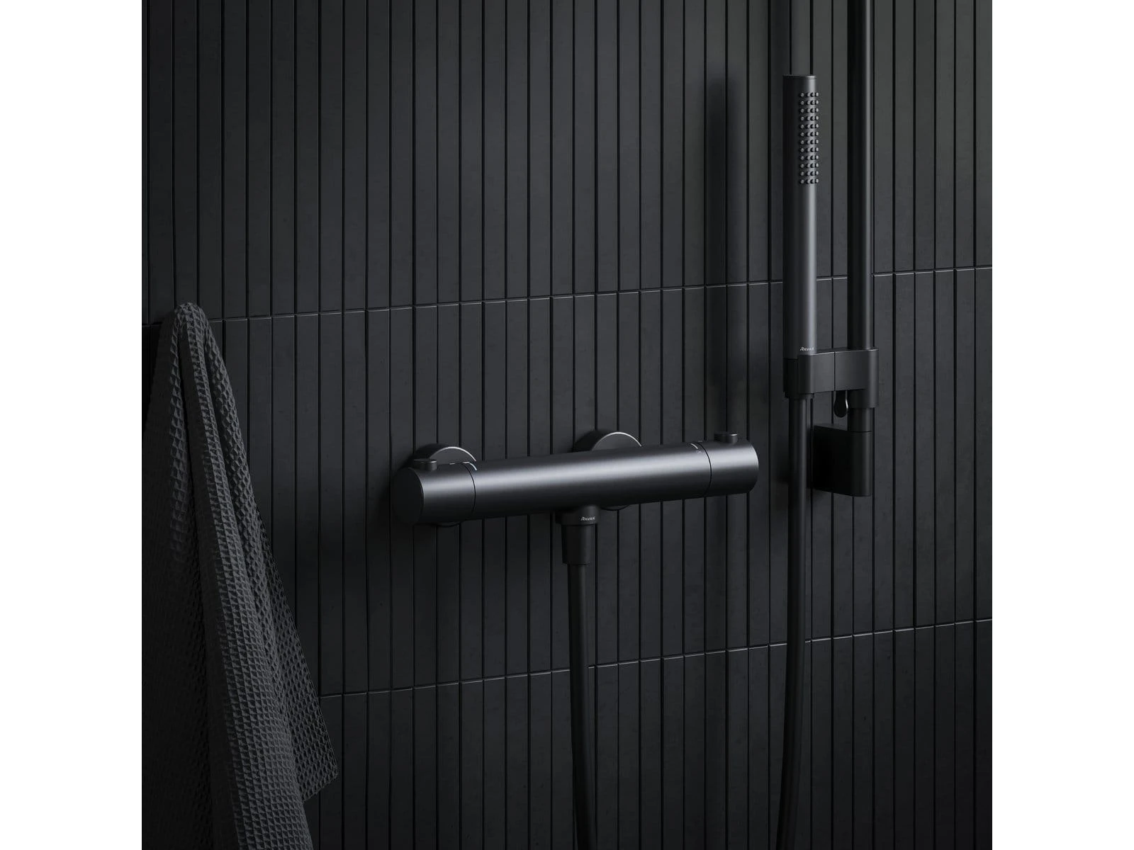 Ravak Puri bateria prysznicowa ścienna z termostatem czarna X070188