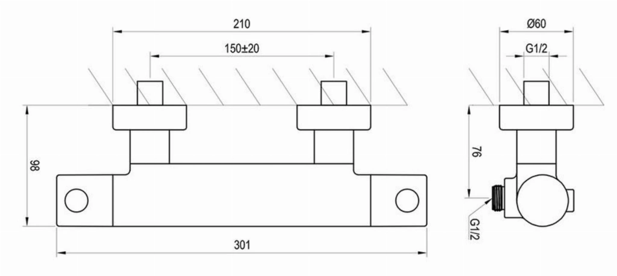 - rozstaw baterii: 150 mm