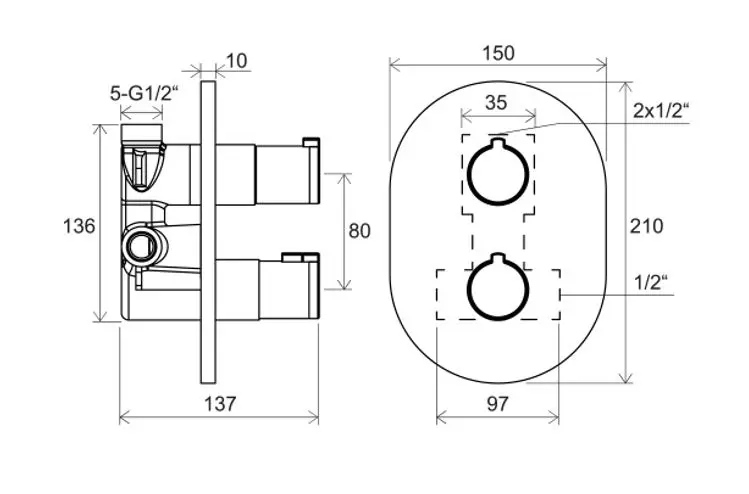 - zalecana: wanien z napuszczaniem przelewem i ujścia słuchawki prysznicowej lub kabiny prysznicowej z deszczownicą i słuchawką prysznicową