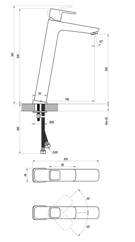 ✔ wysoka konstrukcja – idealna do umywalek nablatowych