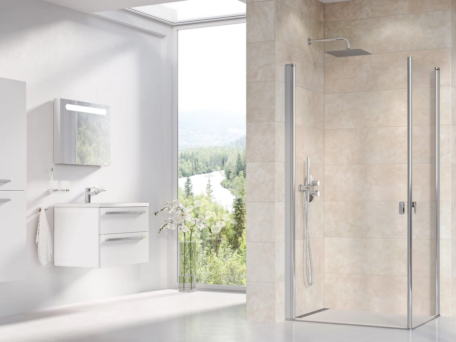Przestrzeń łazienki nie musi ograniczać twojego wyboru. Wybierz model z otwieraniem dokładnie tam, gdzie potrzebujesz. Z boku, z przodu czy z rogu? Połącz dwoje drzwi prysznicowych i ciesz się ekstremalnie szerokim i wygodnym wejściem.
