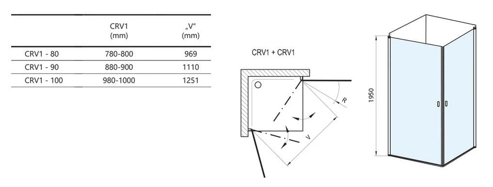 Kabina prysznicowa składa się z dwóch oddzielnych drzwi prysznicowych CRV1 +CRV1 , które zamawiane są osobno! W celu skompletowania kabiny należy zamówić drugi produkt.