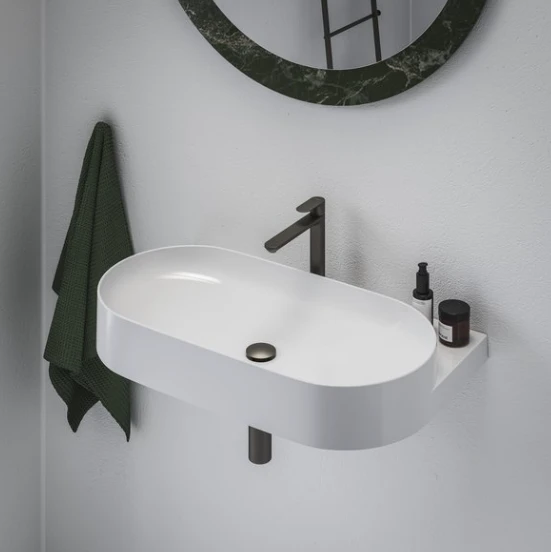 Korek umieszczony w umywalce bez przelewu można połączyć z baterią, syfonem i akcesoriami łazienkowymi w tym samym wykończeniu kolorystycznym.
