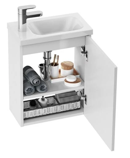 Szczególnie zalecana do toalet i małych łazienek. Najszerszy konceptu Chrome pozwala na aranżację nawet najmniejszych przestrzeni. Możliwość instalacji w połączeniu z szafką lub samodzielnie na ścianie. Możliwość instalacji w rogu łazienki.