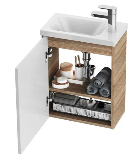 - szafka jest podwieszana, gotowa do montażu na ścianie - przyjeżdża do Ciebie już złożona oraz z kompletem śrub i kołków przeznaczonych do montażu na ścianie