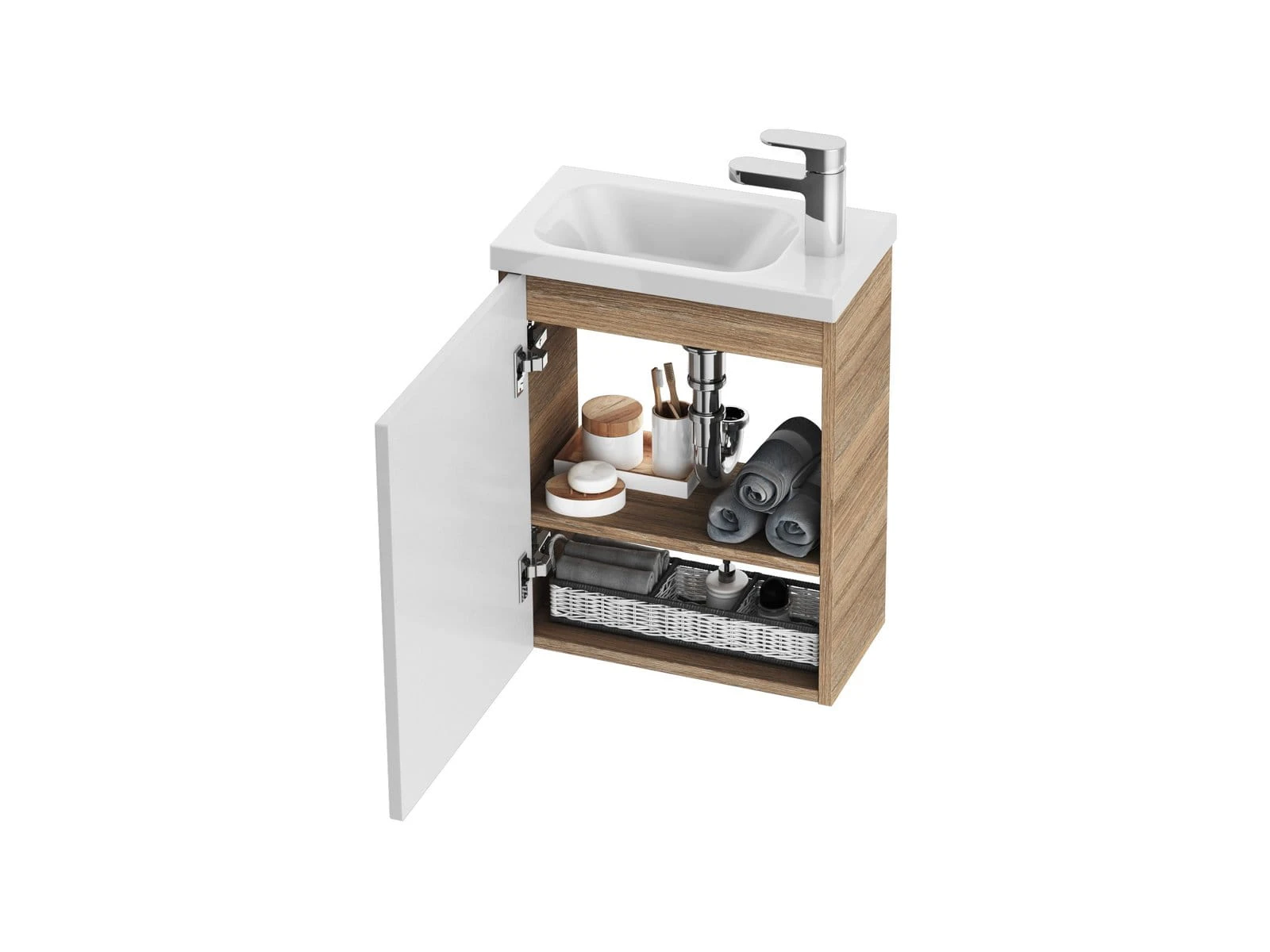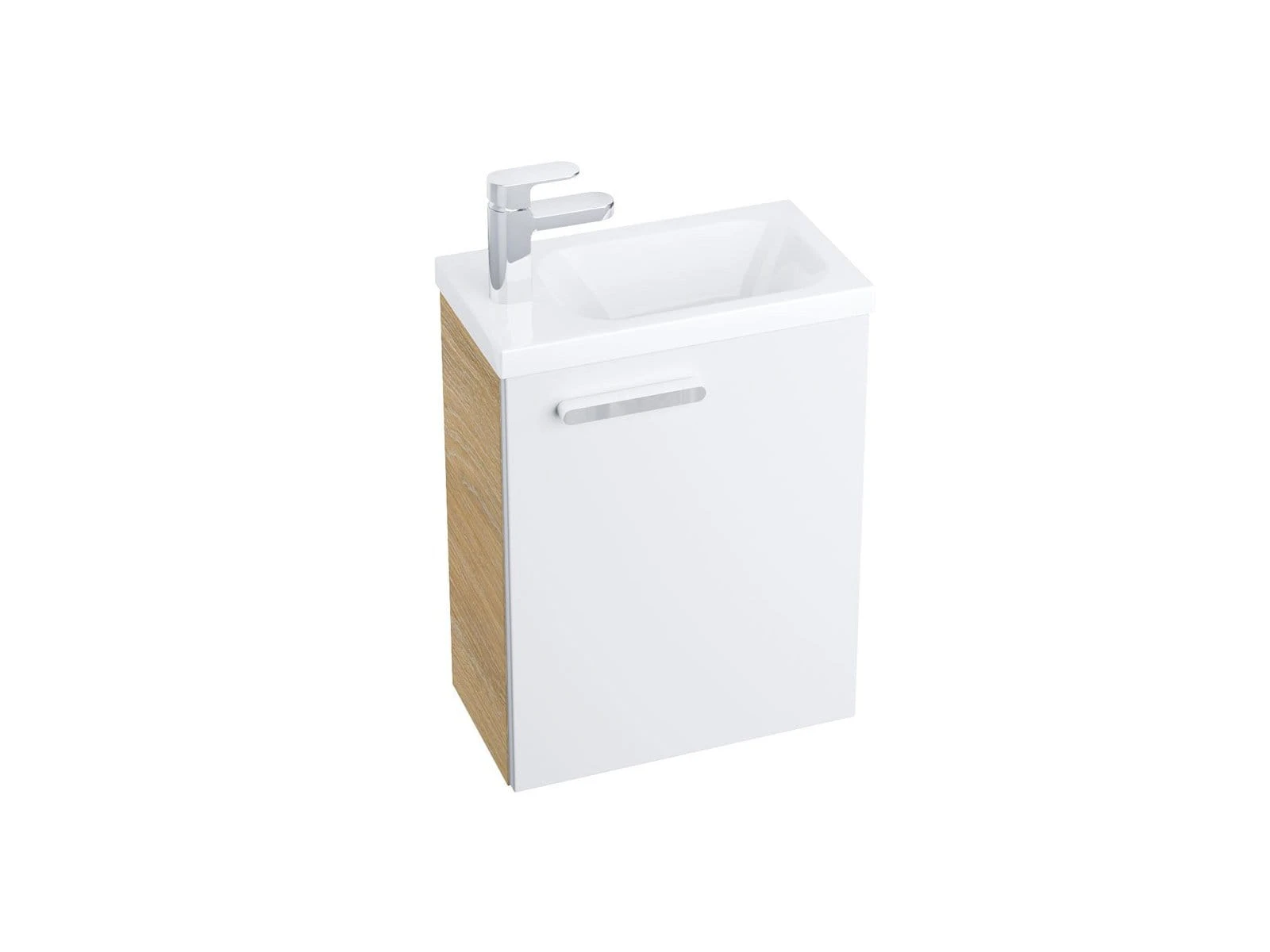 Szafka Chrome 400 przeznaczona jest do umywalki Chrome 400. Korpus jest uniwersalny w dekorze cappuccino. Drzwiczki i umywalka dokupowane są osobno w wersji lewej lub prawej. Opcja lewa lub prawa zależy od strony, po której znajduje się zawias. Zestaw montażowy (zawiasy, osłony, śruby) stanowi część korpusu, który dostarczany jest zmontowany. Szafka przeznaczona jest do zawieszenia na ścianie.