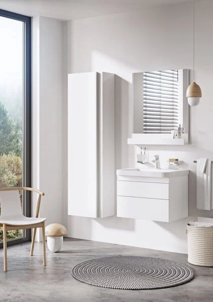 Lustro zaprojektowane w ramach innowacyjnego konceptu łazienkowego 10°. Posiada praktycznie zabudowaną półeczkę na wszystko, co chcesz mieć pod ręką. Lustro z półką na kosmetyki wykonaną w kolorze białym.