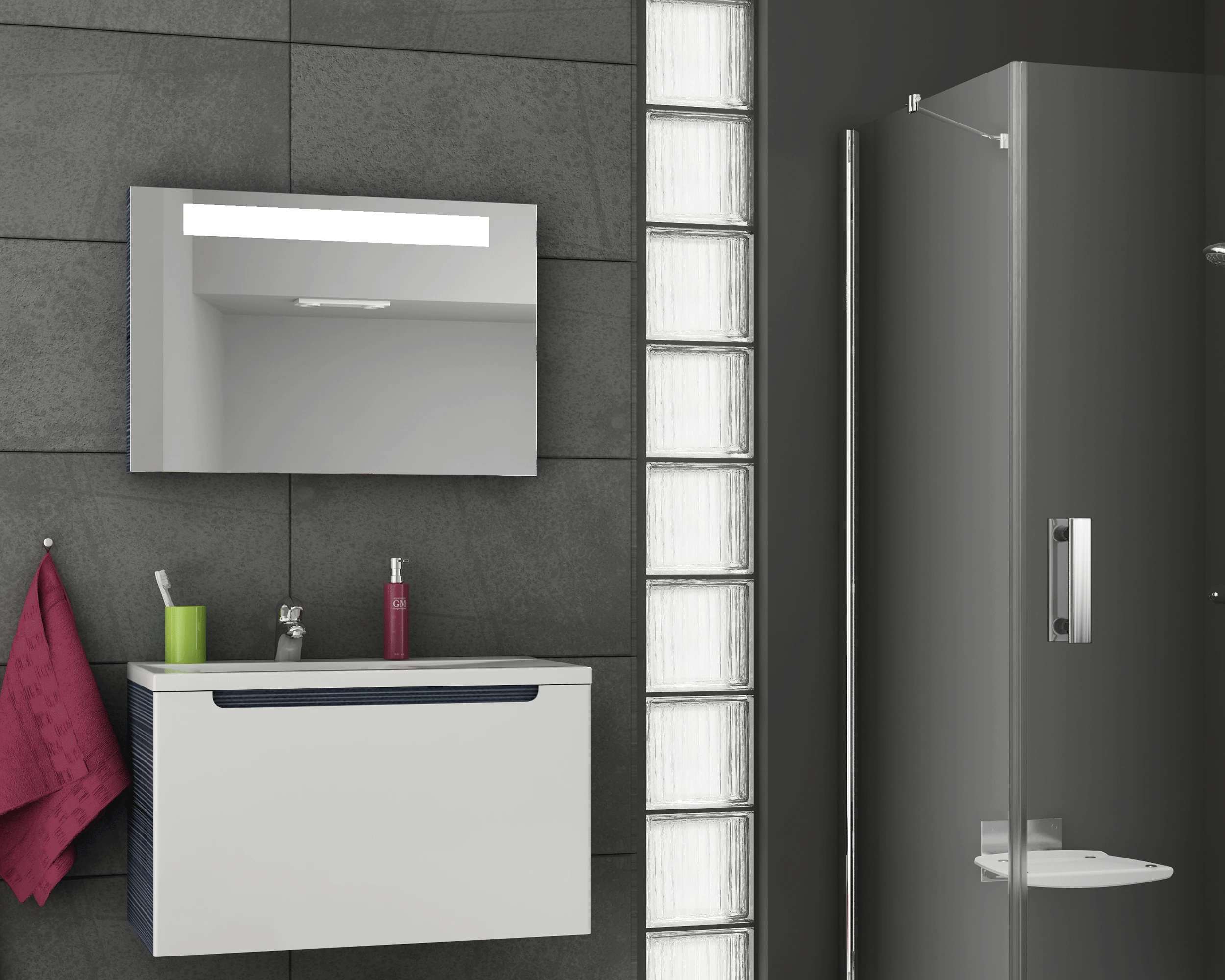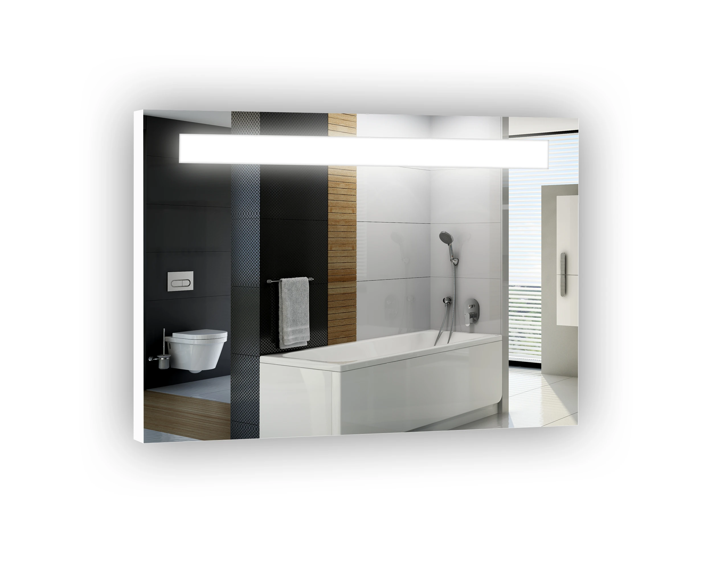 - trwałość i niezawodność: lustro wraz z energooszczędnym oświetleniem LED przymocowane jest na stałe do sztywnej i stabilnej ramy z płyty odpornej na wilgoć