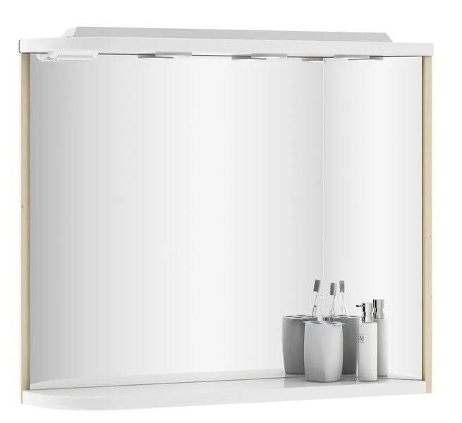 Lustro łazienkowe M 780 Prawe z półką i oświetleniem, białe/brzoza (produkt poekspozycyjny)
