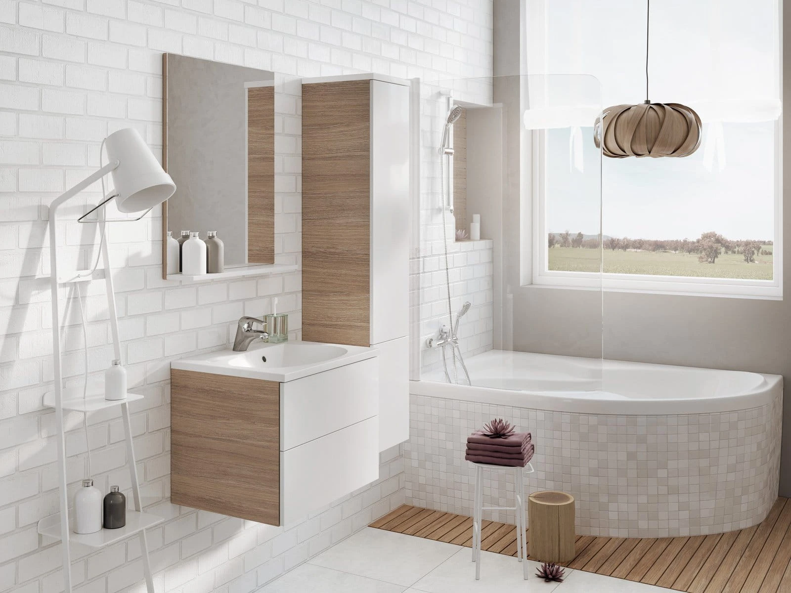 Lustro z półką na kosmetyki wykonaną w kolorze brzoza. Dla uzyskania doskonale skomponowanej łazienki zalecamy łączenie szafki z innymi produktami konceptu Rosa i innymi produktami RAVAK.