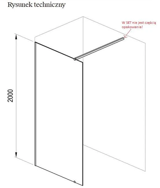 Produkt składa się ze ścianki stałej i profilu przyściennego. Metalowy wspornik (W SET) stabilizujący szybę nie jest częścią produktu i należy zakupić go osobno! Wspornik W set zawiera niezbędne elementy do zamontowania szyby m.in. (wspornik, uszczelkę profilu mocującego, podkładki i śrubki).