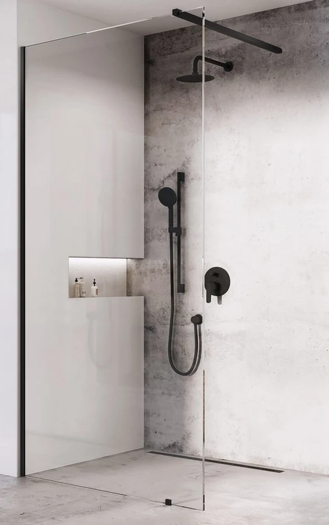 Ścianka Prysznicowa Walk-In Wall czarna , szkło przezroczyste