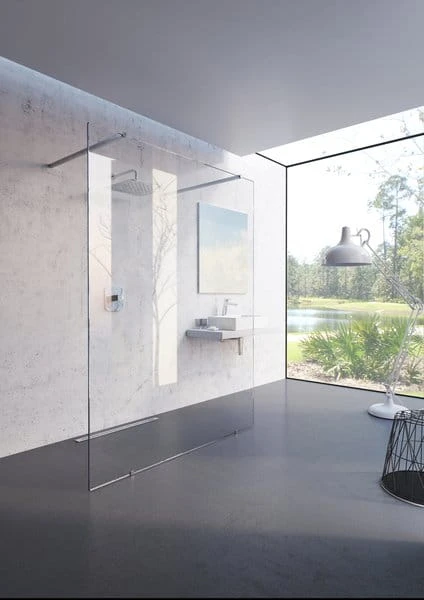 Kabina prysznicowa Walk-In Free wykonana jest z hartowanego szkła bezpiecznego o grubości 8 mm. Stabilność produktu zapewniają dwa metalowe wsporniki o długości 900cm, które określają szerokość otwartego wejścia z dwóch stron. Zalecamy montaż bezpośrednio na podłodze z wbudowanym odpływem lub kratką odpływową.