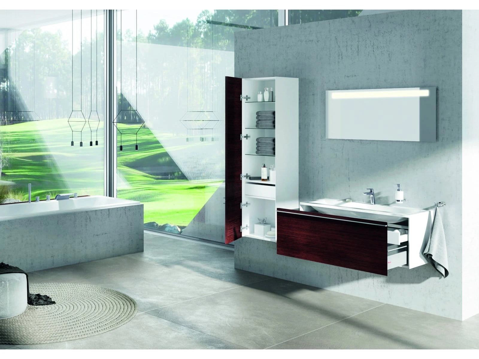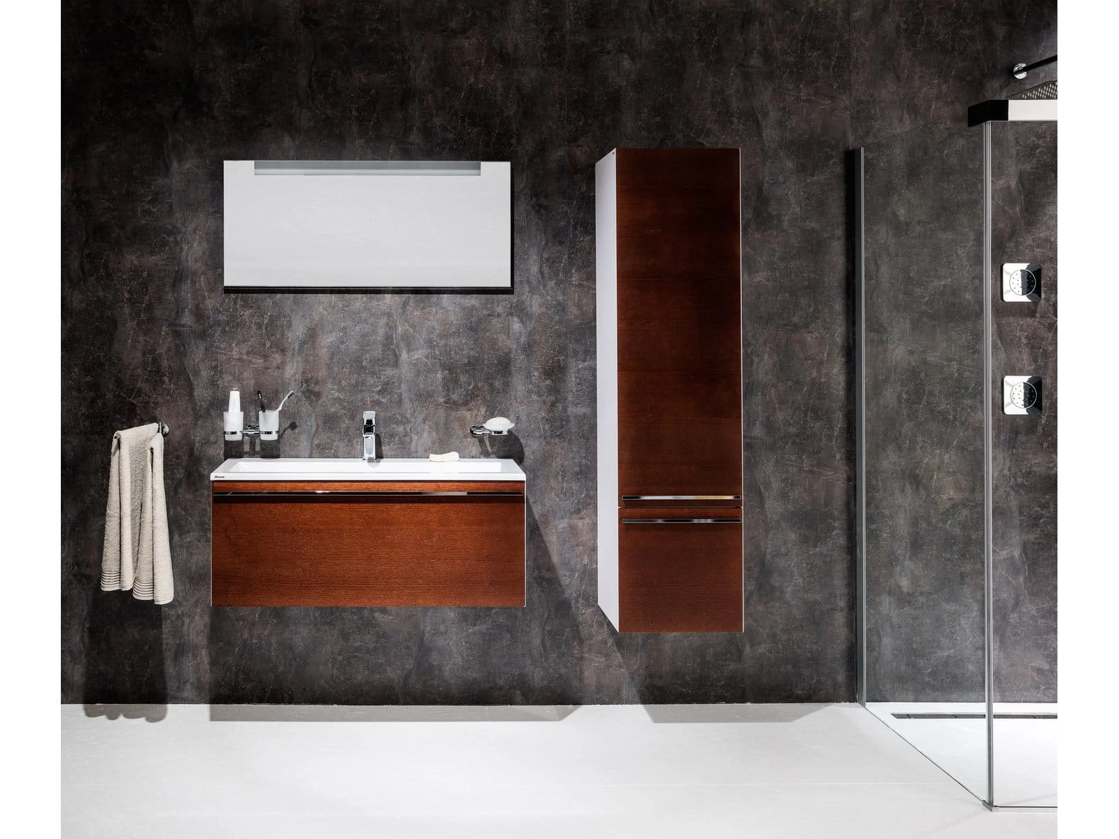 Meble łazienkowe i umywalkowe Clear wyróżniają się krawędziami fazowanymi pod katęm 45°. Precyzyjnie fazowane krawędzie doskonale domykają szafkę czyniąc z niej wyjątkowe na rynku czyste rozwiązanie