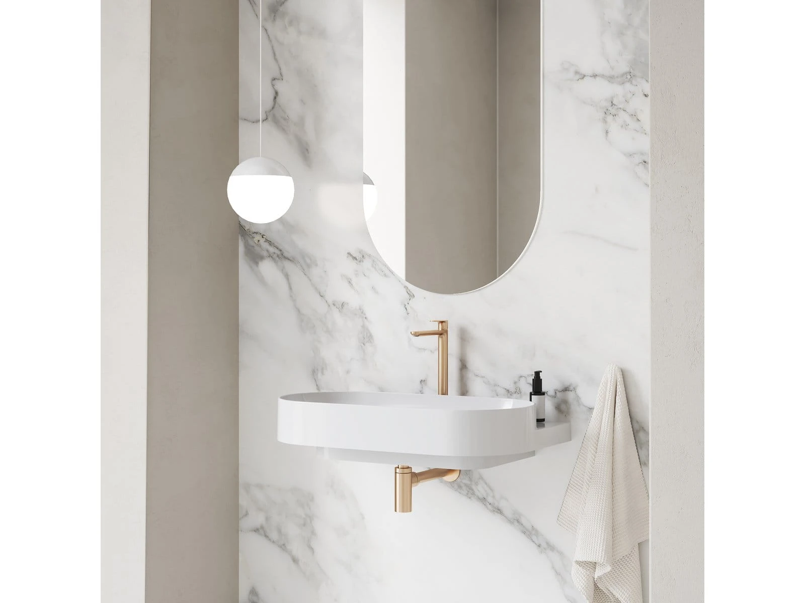 Syfon umywalkowy w wykonaniu Rose Gold Brushed. Przeznaczony głównie do umywalek montowanych na ścianie lub na blacie.