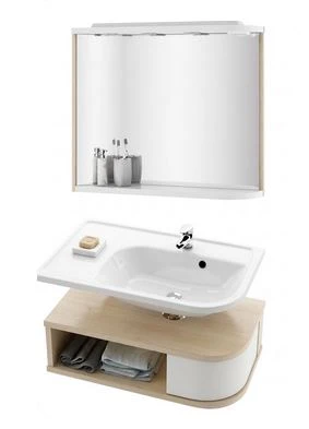 Zaokrąglone rogi szafki komfort użytkowania przy wąskich przejściach. Pojemne meble Praktik pomieszczą nie tylko kosmetyki. Znajdzie się w nich miejsce również na pranie, suszarkę, golarkę oraz inne niezbędne przedmioty w łazience.