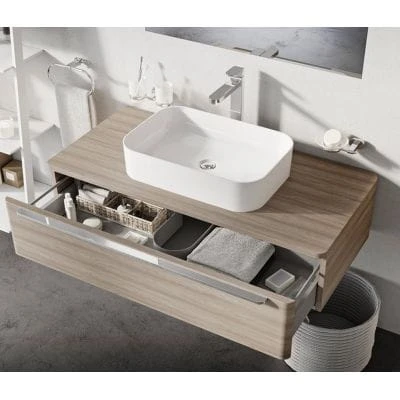 Dla kompleksowego rozwiązania i spójności designu łazienki zalecamy łączenie szafki pod umywalkę SUD z innymi produktami Ravak (umywalki nablatowe, baterie)