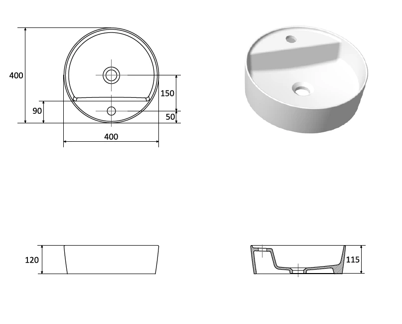 Umywalka nablatowa Ravak okrągła 400 F na blat [PRODUKT NOWY]