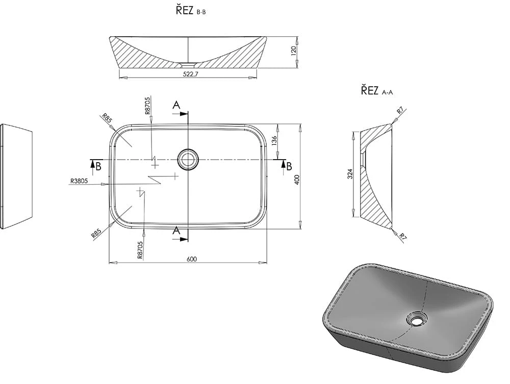 Umywalka Delizia 600 jest wykonana z wysokiej jakości ceramiki i jest przeznaczona wyłącznie do montażu na blacie pod umywalkę lub na odpowiedniej szafce. Umywalka musi być łączona ze stałym odpływem umywalkowym, który zapobiega przelaniu się wody podczas użytkowania.