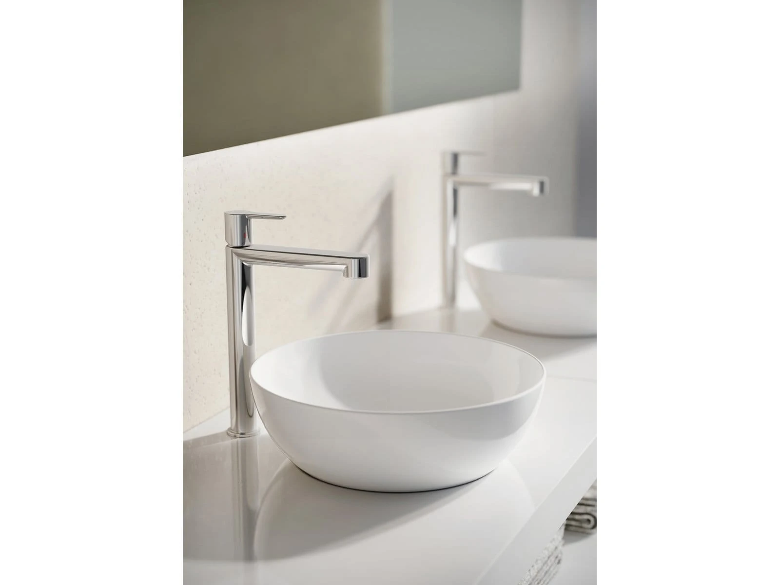 Ty decydujesz, gdzie zainstalować umywalkę. Czy na blacie, czy na szafce łazienkowej, aby uzyskać dodatkowe miejsce do przechowywania. Ty również decydujesz, pod jakim kątem będzie płynąć woda. Idealna jest wyższa bateria stojąca, ale jej umiejscowienie zostawiamy tobie.