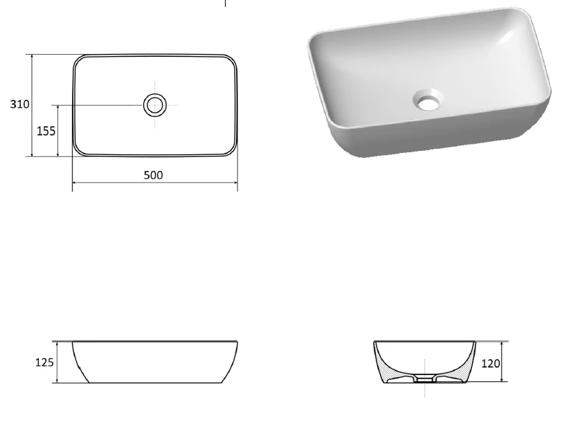 Umywalka RAVAK ceramiczna, nablatowa SPLIT prostokątna 500 na blat