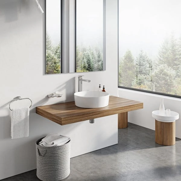 - zalecane dodatki: blat podumywalkowy / szafka podumywalkowa do umywalki nablatowej, korek umywalkowy stały, syfon chromowany lub meblowy, wysokie baterie Chrome lub 10°