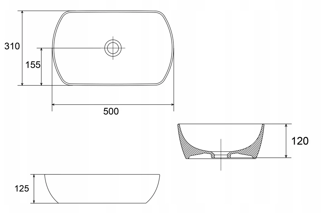 Umywalka ceramiczna UNI 500 O Slim czarna
