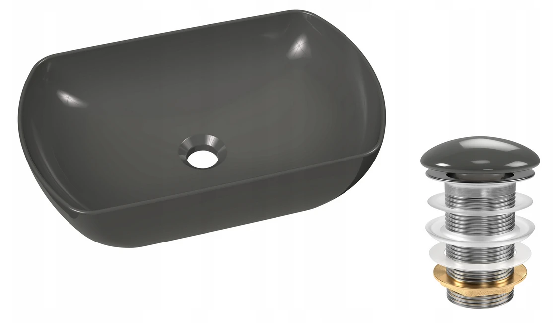 Umywalka ceramiczna Uni 500 O nablatowa, szara + korek [PRODUKT NOWY]