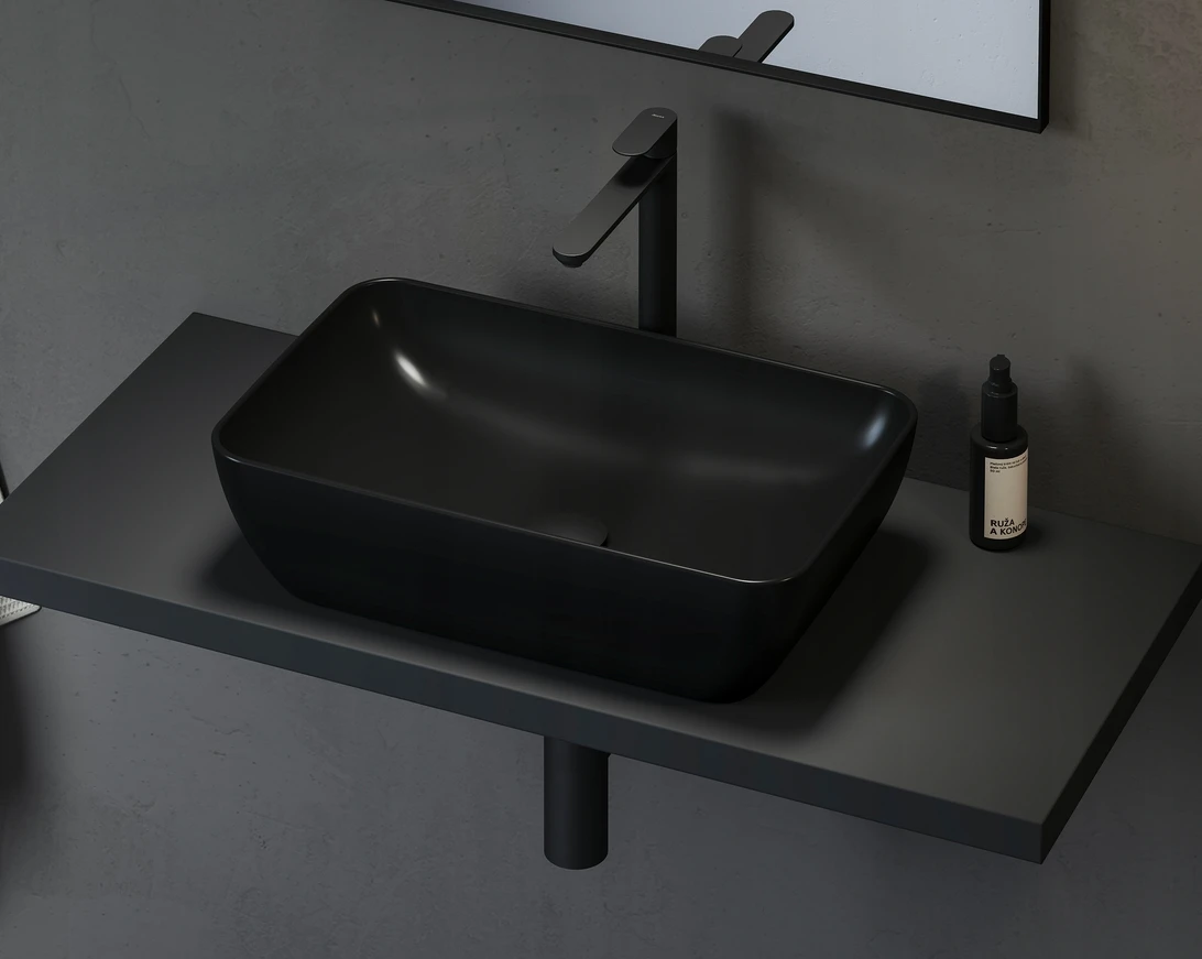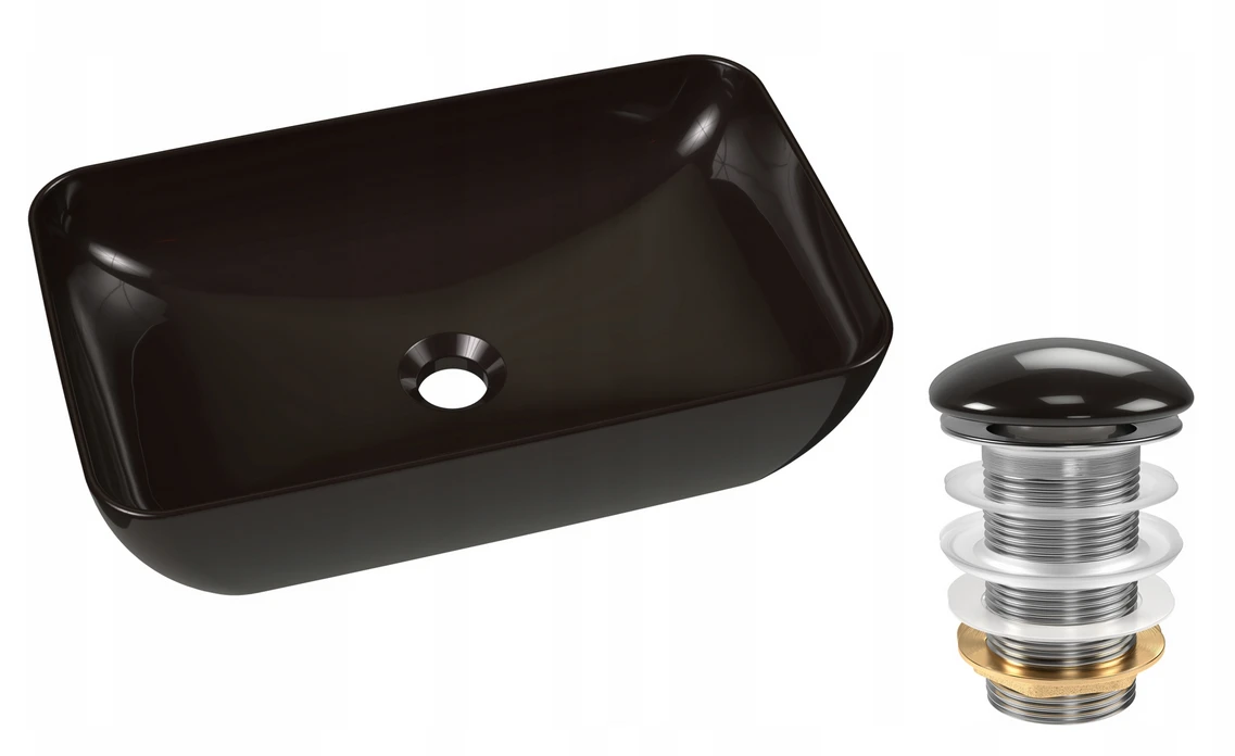 Umywalka ceramiczna Uni 500 R nablatowa, czarna + korek [PRODUKT NOWY]