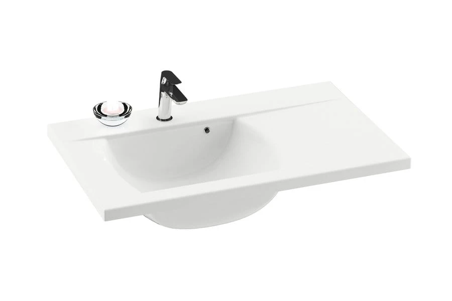 Umywalka konglomeratowa CLASSIC 800 Prawa wisząca, meblowa, biała [PRODUKT NOWY]