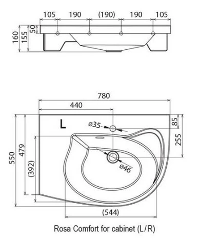 - Montaż: ścienny, umywalka pod szafki z serii Rosa