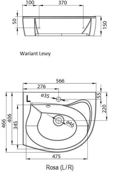 Umywalka konglomeratowa Rosa Prawa wisząca, meblowa, biała [PRODUKT NOWY]