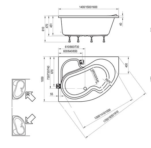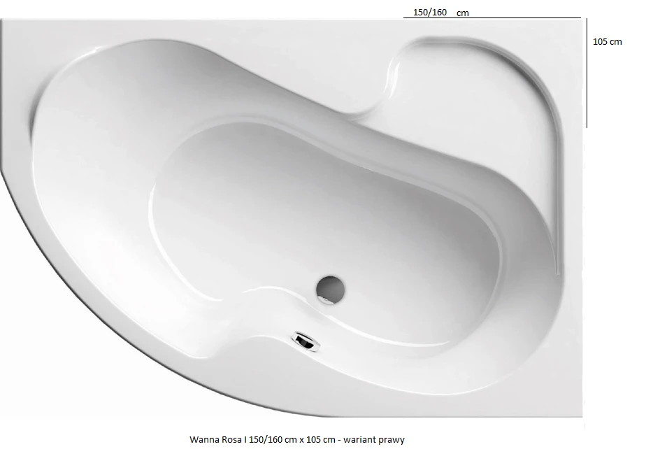 Wanna narożna ROSA 150x105 Prawa, akrylowa, biała [PRODUKT NOWY]