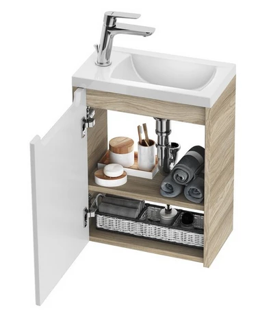 Szafka Classic 400 przeznaczona jest do umywalki Classic 400. Korpus jest uniwersalny w dekorze latte. Drzwi dokupowane są osobno w wersji lewej lub prawej. Opcja lewa lub prawa zależy od strony, po której znajduje się zawias. Zestaw montażowy (zawiasy, osłony, śruby) stanowi część korpusu, który dostarczany jest zmontowany. Szafka przeznaczona jest do zawieszenia na ścianie.