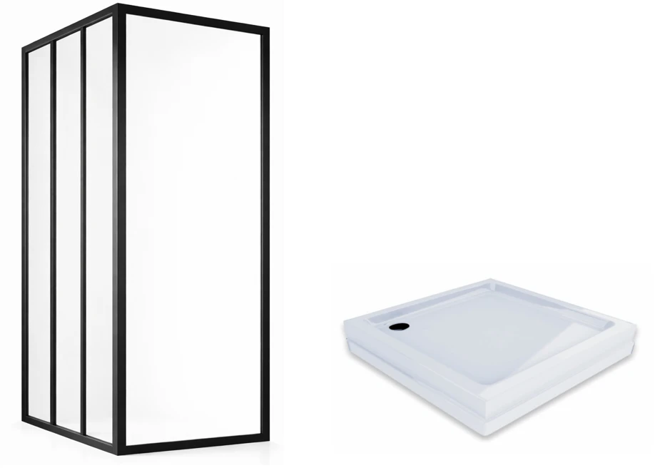 Zestaw kabina kwadrat ASDP3+APSS 80 czarna, transparent + brodzik Kompakt