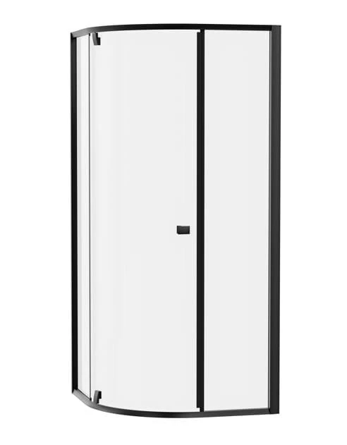 Trzyczęściowa półokrągła kabina prysznicowa Pivot w czarnym wykonaniu z wypełnieniem z przezroczystego szkła z ochronną warstwą Ravak AntiCalc®. System otwierania: obrotowy zawias. Produkt nie posiada wersji prawej i lewej.