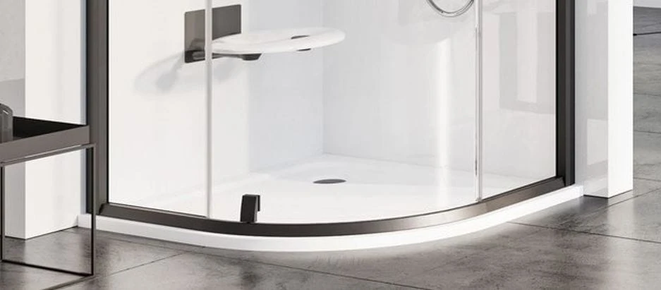 Półokrągły brodzik Elipso Pro Flat z odlewanego marmuru w białym kolorze. Gładka powierzchnia ułatwia utrzymanie brodzika w czystości.