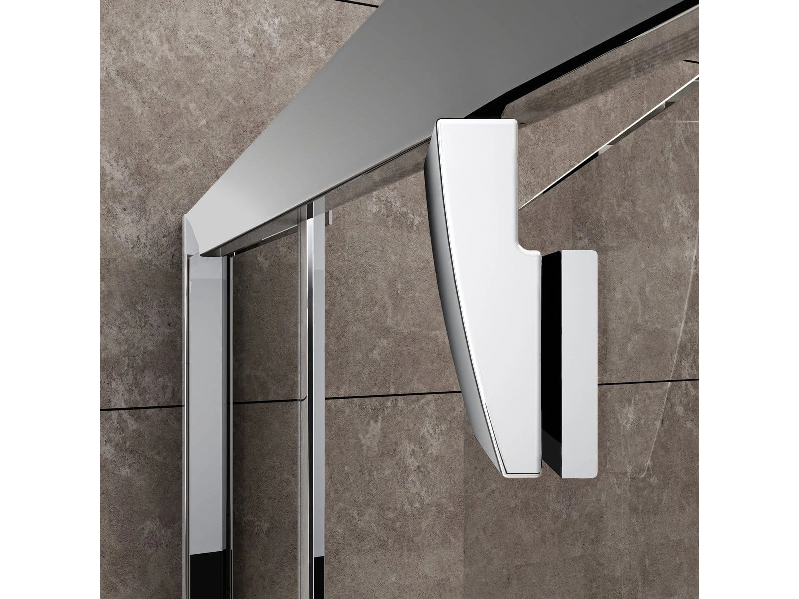Trzyczęściowa półokrągła kabina prysznicowa Pivot w wykonaniu chrom błyszczący z wypełnieniem z przezroczystego szkła z ochronną warstwą Ravak AntiCalc®. System otwierania: obrotowy zawias. Produkt nie posiada wersji prawej i lewej.