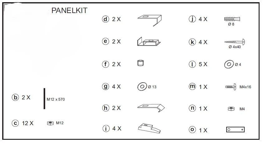 - komplet niezbędnych elementów montażowych